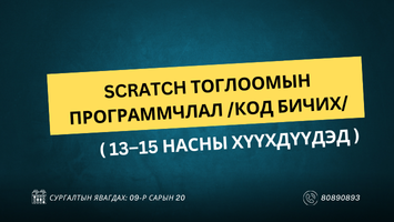 Өсвөр насныханд зориулсан Scratch программчлалын үндсийг тоглоом бүтээх дадлагаар дамжуулан код бичи...